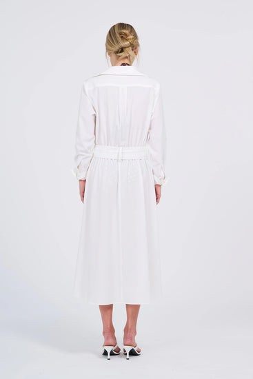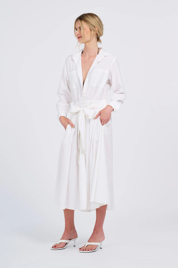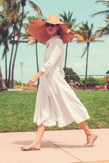 Effortless sophistication meets all-day protection in this timeless dress with sun protection. Crafted from breathable UPF 50+ fabric, it shields your skin from harmful rays while keeping you cool and polished. Offered in classic white and a rosy beige and white stripe, the flattering belted waist, side pockets, and button-up front make it as functional as it is chic. From resort afternoons to sunset dinners, this versatile piece redefines dresses with sun protection — proving that elegance and comfort can coexist beautifully.